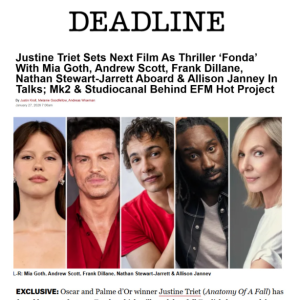 [Deadline] Justine Triet Sets Next Film As Thriller ‘Fonda’ With Mia Goth